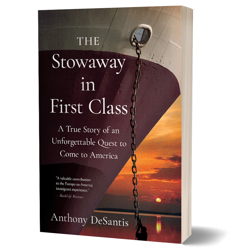 On April 19, a joint event sponsored by the AMHS, Ciao DC and Casa Italiana will feature author Anthony DeSantis (Tony) as guest speaker. Last year Tony published an exciting book titled “The Stowaway in First Class,” the story of his father’s dramatic emigration to America. The book, which was launched in May of last year at the Italian American Museum in Washington, D.C., has become an Amazon Best Seller, and work is underway to turn it into a motion picture. The screenwriter and director of the upcoming film, Chris Martini, will also be in attendance.