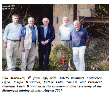 When the Society established the Scholarship Committee, Will was one of its ardent supporters. Another important event was held in December 2007 in Casa Italiana on “Monongah - 100 Years Later: A Commemoration of America’s Worst Mining Disaster”. That disaster took the lives of hundreds of Molisani and Abruzzesi immigrants. You will be missed, my dear friend. (submitted by AMHS President Emeritus Lucio D’Andrea).