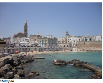 On our last full day in Puglia, we decided to take the train and travel south to Monopoli. It was another beautiful day, and the five-minute ride on the train allowed us a good amount of time to walk around this beautiful and historic sea side town and spend a lovely day on the wonderful sandy beach there below some of the walls of the town.