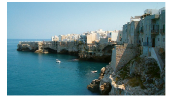 We waited by the car, laughing. What else could we do? Eventually, a tow truck arrived and, after attaching the tow chain to our Fiat and pulling us on to the truck, we rode to the station, in style, comfortably still sitting in our Fiat. There, for a fee, we got our full tank of gas (meglio tardi che mai), got the battery jump-started, and we were once again on our way to Polignano a Mare. The rest of the trip went fine with the exception of lots of weekend traffic around Bari which, unfortunately, we never had time to visit. Once we finally arrived in Polignano, we had quite a bit of trouble finding our way to our designated parking lot.