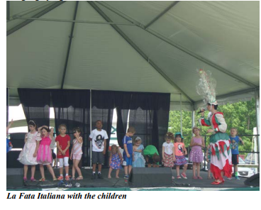 One of my personal highlights of the day was a performance by the Italian native singer, actress, and award-winning language educator Simona Rodano, “La Fata Italiana” (the Italian Fairy). Simona, who is based out of New York, has created a unique edu-tainment language-through music program for young children. At the Festa, La Fata brought a group of children to the main stage where they acted out words in Italian, then sang the words to taped music sung and orchestrated by Ms. Rodano.