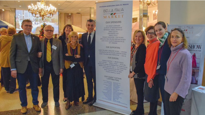 Also present for the ceremony were representatives of the sponsors, including AMHS President Ray LaVerghetta and Past President Maria D’Andrea-Yothers. On the opening day of the Market, a fashion show, organized by Franca Bartoli and sponsored by Bethesda Travel Center, featured upscale designs by Amina Rubinacci, Anna Gobbi, Melitta Paterni, and Franca Bartoli. For nearly two years, a core group of five board members, including AMHS members Anna Isgrò and Nancy DeSanti, worked hard to make the dream a reality.