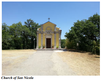 Among the interesting sights to see are the beautiful churches in and near the town. The Church of San Nicola features a beautiful statue of the saint in a small niche. There is a pyramid-shaped bell tower with an iron cross on top is over the façade. Below it is the bell, which on the day when St. Nicholas is celebrated, on the last Sunday of May, floods the surrounding valleys with sound.