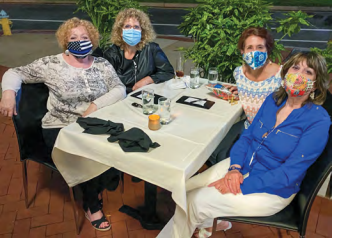 Who are those masked women? Left to right, Luciana Caleb, Lynn Sorbara, Maria D’Andrea-Yothers and Nancy DeSanti enjoy dinner together.