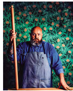 Evan Funke with his handmade mattarello which he uses to make world-class pasta.