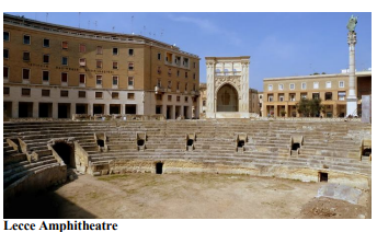 Lecce, in addition to being full of beautiful palaces, churches and elegant stores, is known for its Roman amphitheatre which is right in downtown Lecce in the Piazza di Sant’Oronzo, named after the city’s patron saint. Centuries ago, gladiators fought in this amphitheatre, because that was the entertainment of the day. But we learned that they didn’t “fight to the death,” that was only for slaves (captured in war) and wild animals (such as two elephants or a tiger versus a lion).