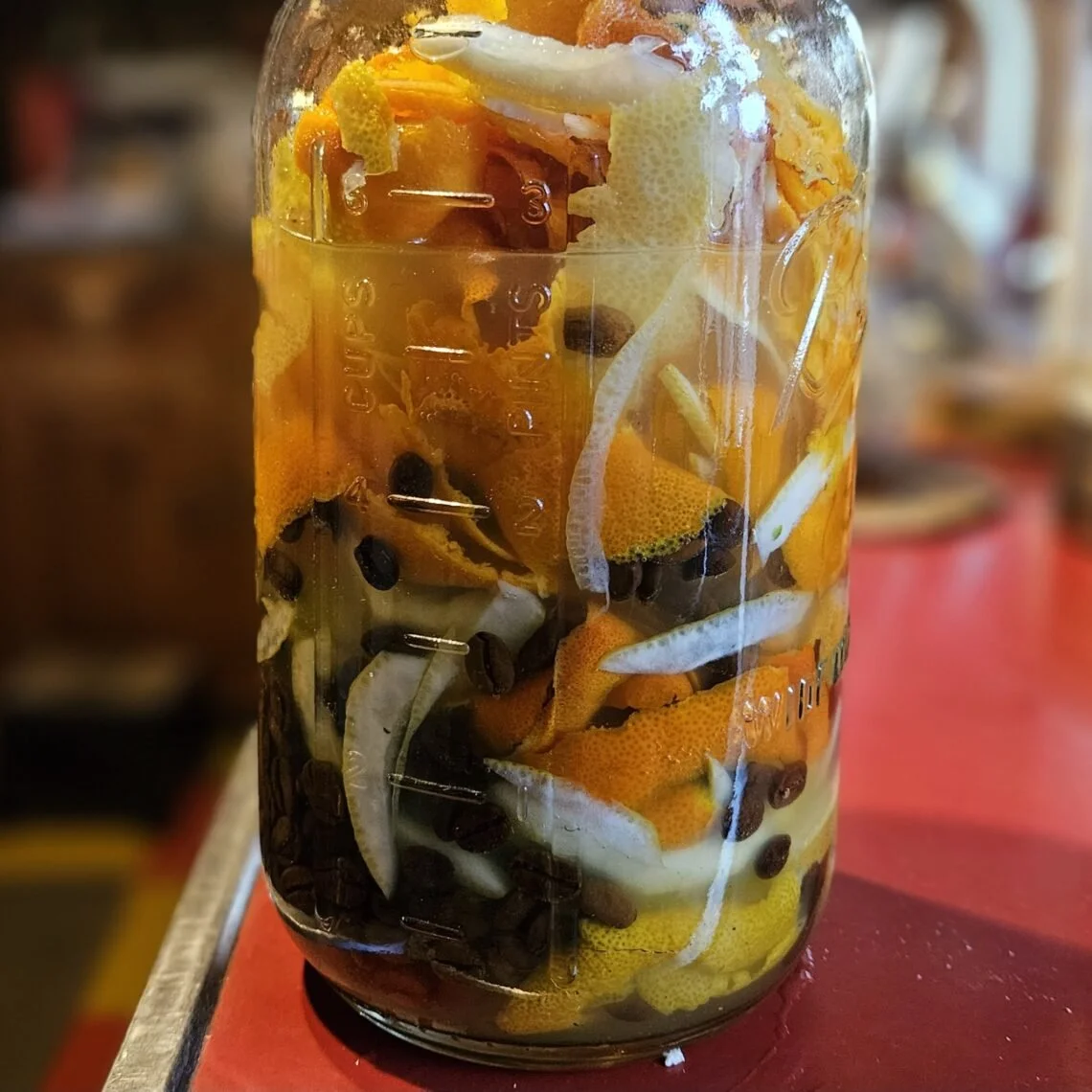 Alcohol 500g + lemon peel + mandarin peel + a few coffee beans