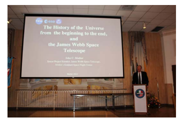It was also reassuring to know that even the experts cannot offer definitive answers to many of the age-old questions about the universe, which is constantly expanding, thus constantly challenging even the greatest scientific minds. Dr. Mather’s speech was enhanced by a power point presentation, which showed some spectacular images taken from the COBE (Cosmic Background Explorer) project -- whose findings formed the basis for the awarding of the Nobel Prize in physics -- and drawings of his current work, the James Webb Space Telescope.