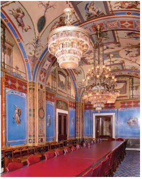 Pellegri who left $500,000 for NIAF and U.Md. to study the influence of ancient Rome. Professor Friedland has been awarded a National Endowment for the Humanities fellowship to write “Classical Washington: Greece & Rome in the Art and Architecture of DC.” There are so many masterpieces by Brumidi in the Capitol, but the focus of Professor Friedland’s talk was one specific room — S-127, now the Senate Appropriations Committee room since 1912, but formerly the Naval Affairs Committee room from 1860-1897. This was Brumidi’s first full-scale commission in the Capitol.