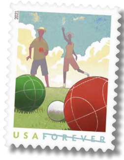 We can now add bocce to the list of Italian-themed stamps issued by the U.S. Postal Service. On August 12, the service released a stamp recognizing bocce as one of eight popular back yard games. Bocce, also spelled boccie and bocci, originated in Italy and is played with differently colored wooden bowling balls and a small white ball, known as the pallino, on a long, narrow, flat, clay or dirt court. The other seven games recognized were badminton, corn hole (also known as bean bag toss), croquet, frisbee throwing, horse shoe tossing, tether ball, and baseball.