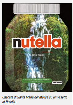 The beautiful small town of Santa Maria del Molise is located at the foot of the Matese mountains in the southern Apennines and is known for its beautiful waterfalls (cascate). It has approximately 653 inhabitants. This year, as part of its “ti amo Italia” campaign, the Ferrero brand Nutella featured on its jars (vasetti) a scene of each of the 20 regions of Italy, and for Molise, it selected Cascate di Santa Maria del Molise. (For Abruzzo, it picked Gran Sasso).