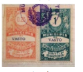 The stamps were used to collect municipal fees on various documents — birth, marriage, and death certificates, family status certificates, mandatory municipal identity cards, health certificates, various contracts (e.g.: sale of cemetery plots, sales of fishing boats), and others. In addition to the municipal stamps, some documents also required national revenue stamps.