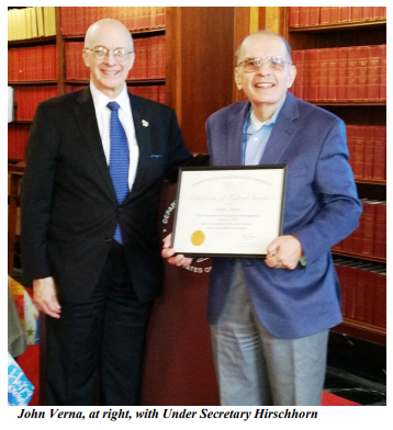 On Friday, December 9, I had the great honor to attend the retirement ceremony for long-time AMHS member and officer, John Verna. John spent 40 dedicated years working in the Department of Commerce, Bureau of Industry and Security (BIS), which was formerly known as the Bureau of Export Administration. BIS’ mission is to advance U.S. national security, foreign policy, and economic objectives by ensuring an effective export control and treaty compliance system and promoting continued U.S. strategic technology leadership.
