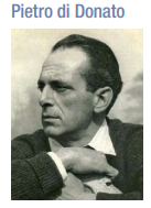 Pietro di Donato was born on April 3, 1911, in West Hoboken (now Union City), New Jersey. He was the eldest of eight children born to his parents, Geremio and Annunziata Cinquina di Donato, who had emigrated from Vasto. Geremio worked as a brick layer. On March 30, 1923, four days before Pietro’s 12th birthday, Geremio was killed when the wall of a building where he was working collapsed on him. After his father’s funeral, Pietro quit the seventh grade to join a building trade union in order to help support his family. He kept his union membership his entire life. When his mother died a few years later, Pietro became fully responsible for his seven siblings. During a strike, Pietro wandered into a library and discovered the works of the Italo-French novelist, Emile Zola, who inspired him to write about his own experiences in the Italian immigrant community. He then started to take evening classes in construction and engineering at the local city college. After Pietro earned promotions and after some of his younger siblings also began to work, the eight children were able to move to Northport on Long Island.