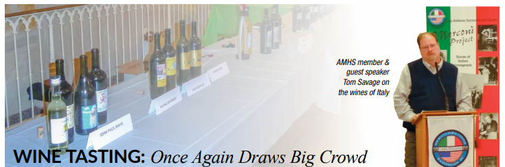 On November 11, 2018, a beautiful fall day, 80 AMHS members and friends came together at Casa Italiana again to enjoy our annual wine tasting and luncheon. And once again, the event proved to be an outstanding success, with 10 winemakers participating. Much credit must go to Romeo Sabatini who always helps with this event, and especially to Jim Gearing, who organized the wine makers’ participation.
