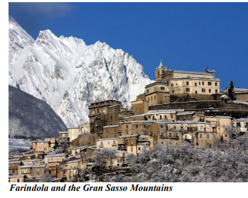 The beautiful town of Farindola is located 45 kilometers from Pescara in the region of Abruzzo. Farindola has approximately 2,040 inhabitants, known as Farindolesi. Farindola has recently become known worldwide as the town closest to the area where the snow avalanche buried Hotel Rigopiano. The picturesque town is situated on a rocky hill along the left bank of the Tavo River. The area is rich in natural springs and is renowned for its pecorino cheese.