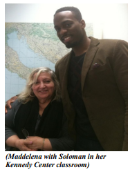 (Maddelena with Soloman in her Kennedy Center classroom) I work with my young singers to teach them how to properly pronounce the Italian words, but I also try to instill in them not just a love for opera, but also a love for the Italian language and culture - and of course the food!! These young singers don’t make much money, so sometimes I invite them to my home for dinner and some of my homemade limoncello.