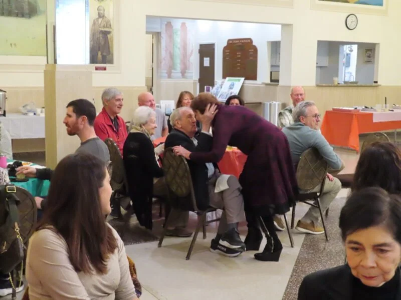 The D’Andrea family after the announcement at the November 17 meeting that one of the AMHS scholarship awards would be named for their family. Maria is shown kissing her father, Lucio. Edvige is to Lucio’s left.